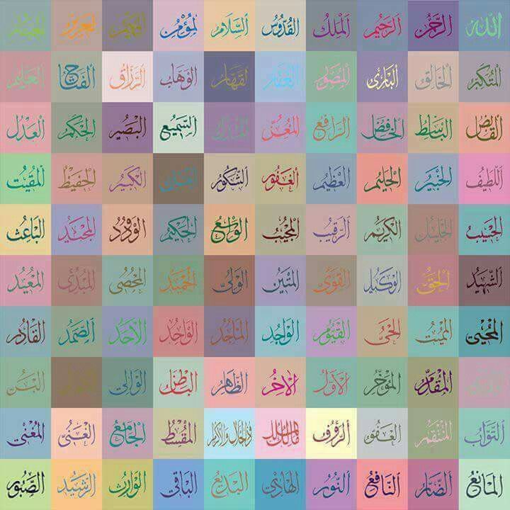 « Certes Allah a quatre vingt dix neuf noms, cent moins un, celui qui les dénombre rentre au paradis »1